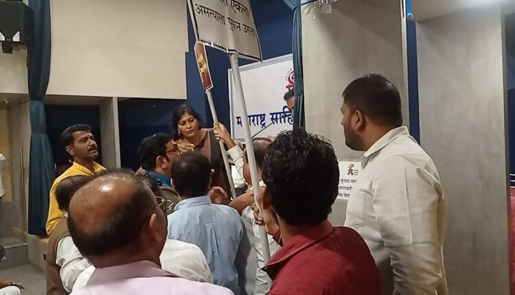 पुणे : महाराष्ट्र साहित्य परिषदेच्या वार्षिक सर्वसाधारण सभेत शनिवारी मोठा गोंधळ घडला. परिषदेचे आजीव सभासद राजकुमार भानुदास धुरगुडे हे संवैधानिक मार्गाने निषेध नोंदवण्यासाठी सभागृहात आले असता, मिलिंद जोशी यांच्या अनधिकृत गटातील भाडोत्री गुंडांनी त्यांना प्रवेश करण्यास अडथळा आणण्याचा प्रयत्न केला. सभागृहाचा दरवाजा आतून बंद करून चोरट्याप्रमाणे बैठक घेण्यात आली आणि अवघ्या तासाभरातच ती बैठक गुंडाळण्यात आली.